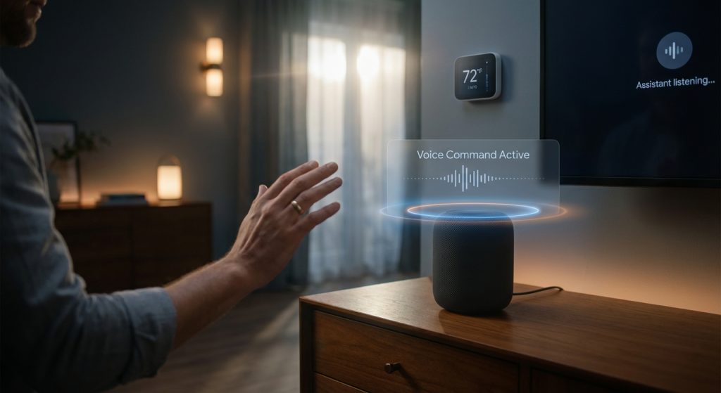 Đầu tiên, các thiết bị này sử dụng công nghệ nhận dạng giọng nói. Chúng lắng nghe và phân tích lệnh của bạn. Sau đó, chúng xử lý thông tin. Cuối cùng, chúng thực thi hành động tương ứng. Các trợ lý ảo như Google Assistant, Alexa, hoặc Siri thường là trung tâm điều khiển. Chúng kết nối với nhiều thiết bị khác nhau trong nhà. Ví dụ, bạn có thể yêu cầu bật đèn, điều chỉnh nhiệt độ, hoặc phát nhạc.