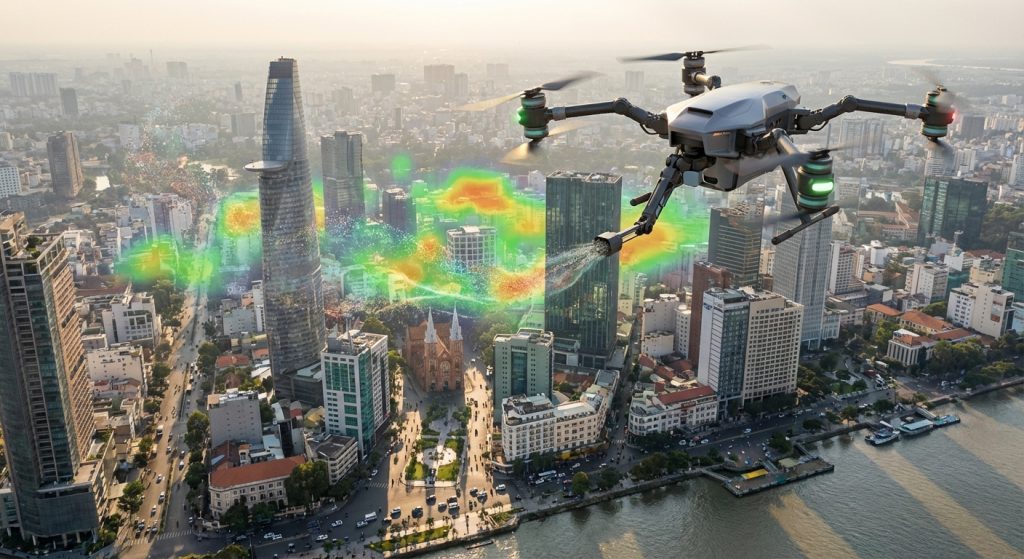 Drone Đo Chất Lượng Không Khí Sài Gòn 3D