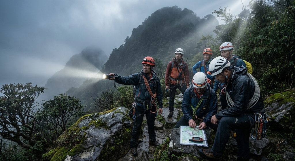 Fansipan, “Nóc nhà Đông Dương”, cao gần 3.143 mét. Địa hình ở đây rất phức tạp. Bao gồm rừng rậm, vực sâu, và các mỏm đá cheo leo. Thời tiết trên núi thay đổi đột ngột. Sương mù dày đặc có thể bao phủ bất cứ lúc nào. Nhiệt độ giảm sâu vào ban đêm. Những yếu tố này gây khó khăn lớn cho lực lượng cứu hộ.