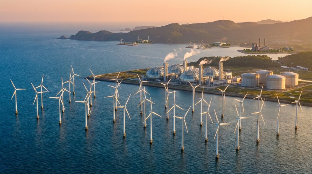 Một đội tàu chở khí hydro xanh đang di chuyển trên biển, tượng trưng cho tương lai năng lượng sạch của Việt Nam.