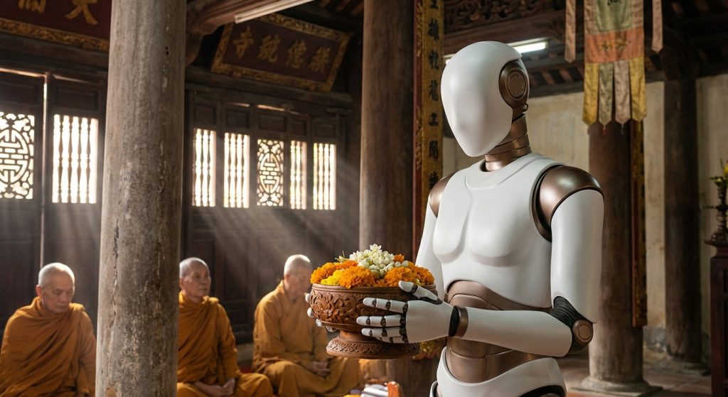 Sự phát triển vượt bậc của trí tuệ nhân tạo và robot học đang mở ra những khả năng mới. Chúng ta đang chứng kiến robot bước vào nhiều lĩnh vực của cuộc sống. Thậm chí, chúng còn có thể xuất hiện trong các không gian linh thiêng như đền chùa. Điều này đặt ra câu hỏi: Liệu robot có thể hỗ trợ các nghi lễ tôn giáo tự động?