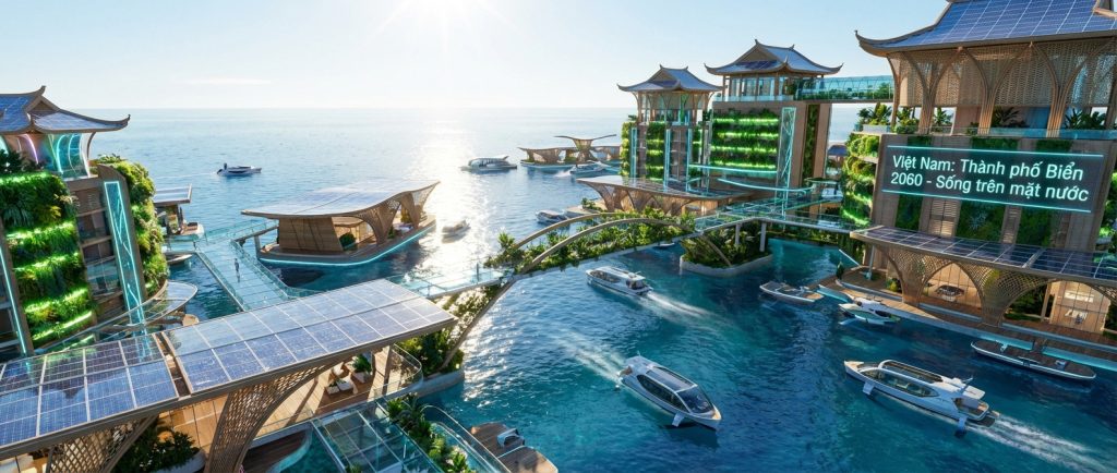 Tưởng tượng về một tương lai nơi những thành phố không còn bị giới hạn bởi đất liền. Việt Nam đang ấp ủ tầm nhìn táo bạo: “Thành phố Biển 2060”, một kỷ nguyên sống mới trên mặt nước. Đây không chỉ là một giấc mơ viển vông. Nó là một kế hoạch chi tiết cho sự bền vững và thích ứng. Đặc biệt là trước những thách thức biến đổi khí hậu đang diễn ra.